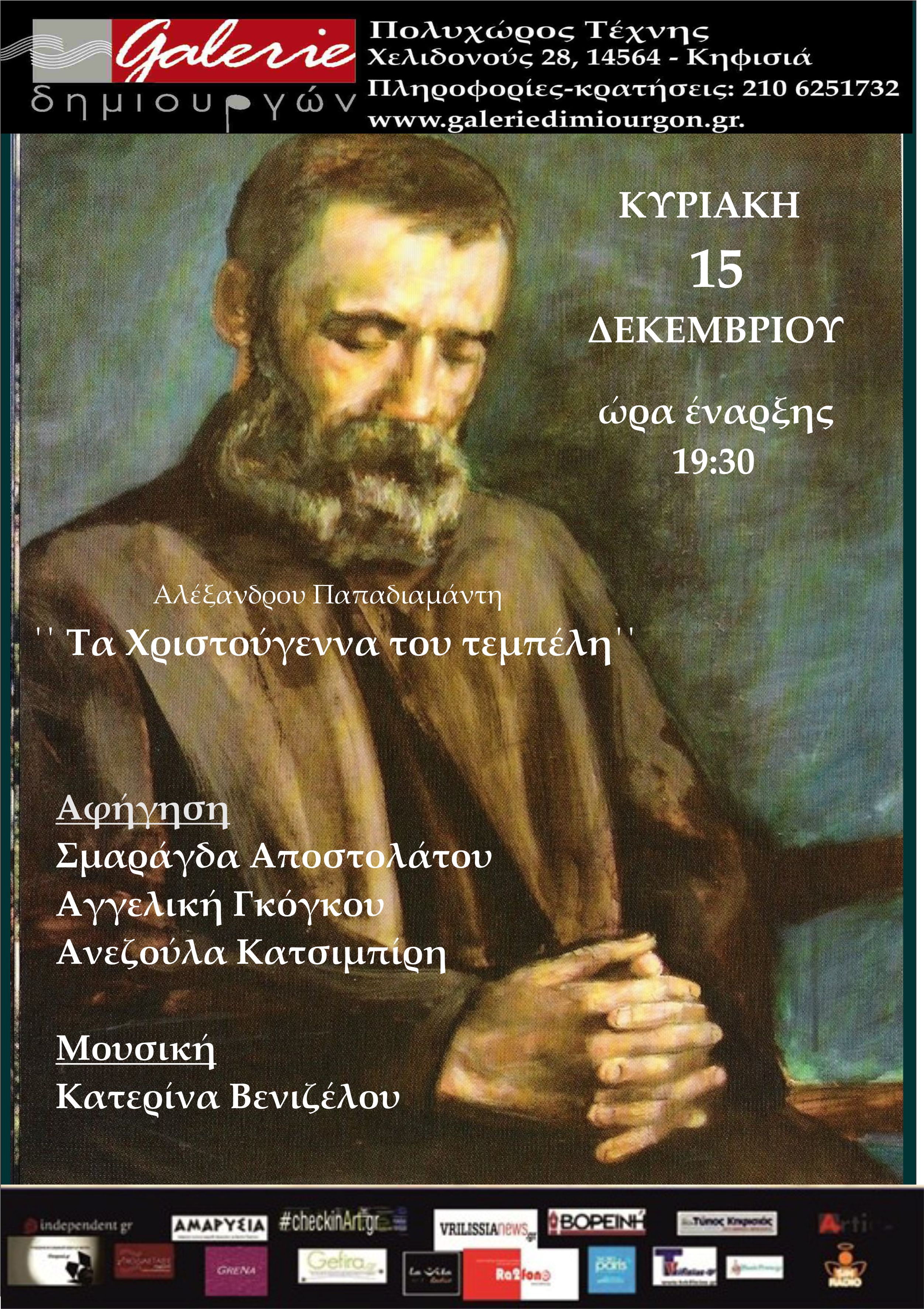 Μια αφηγηματική- θεατρική παράσταση με τραγούδι και μουσική, εμπνευσμένη από τα χριστουγεννιάτικα διηγήματα του Παπαδιαμάντη.