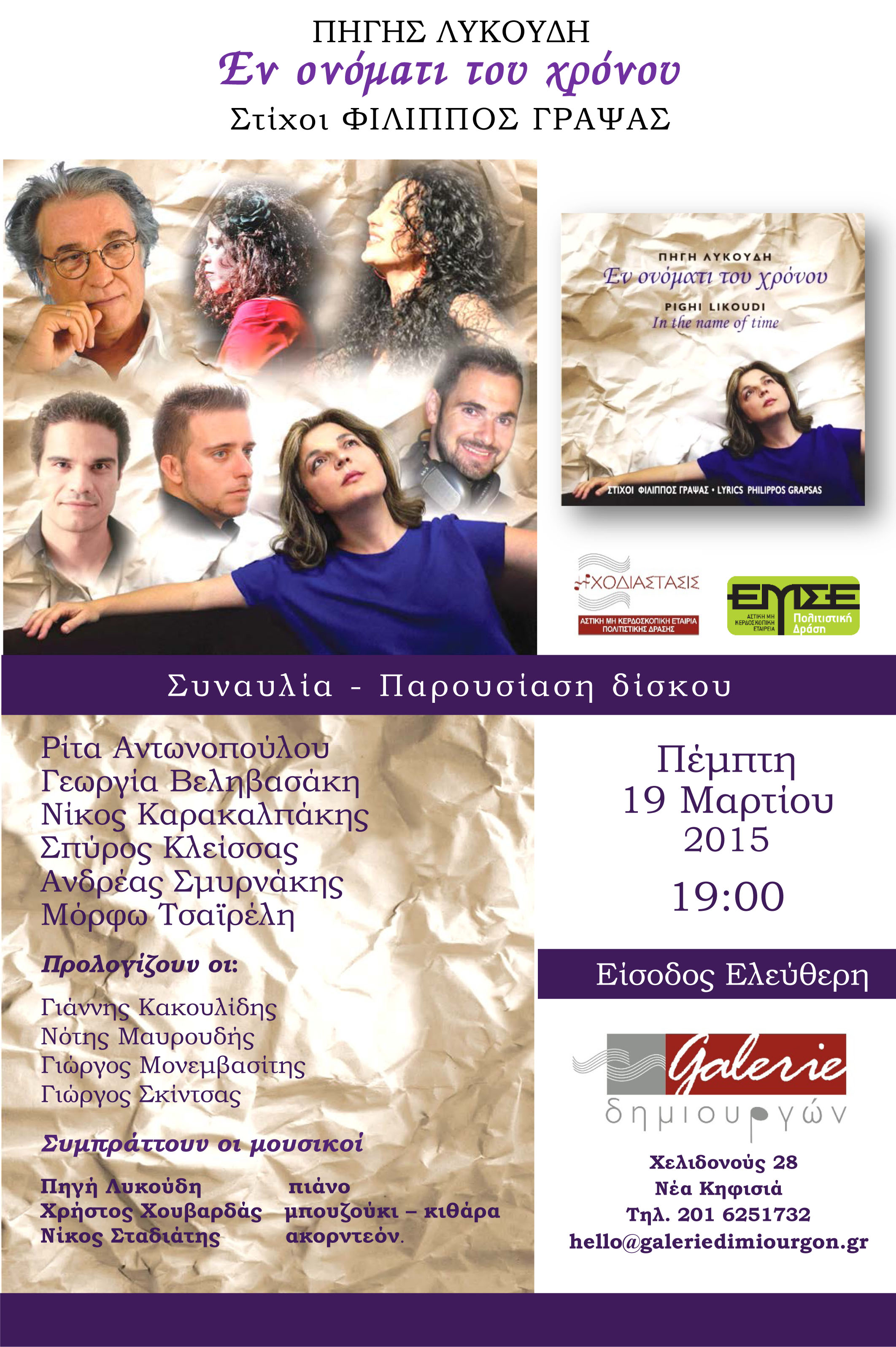 σας καλούν στην παρουσίαση του ψηφιακού δίσκου τους ΄΄Εν ονόματι του χρόνου΄΄