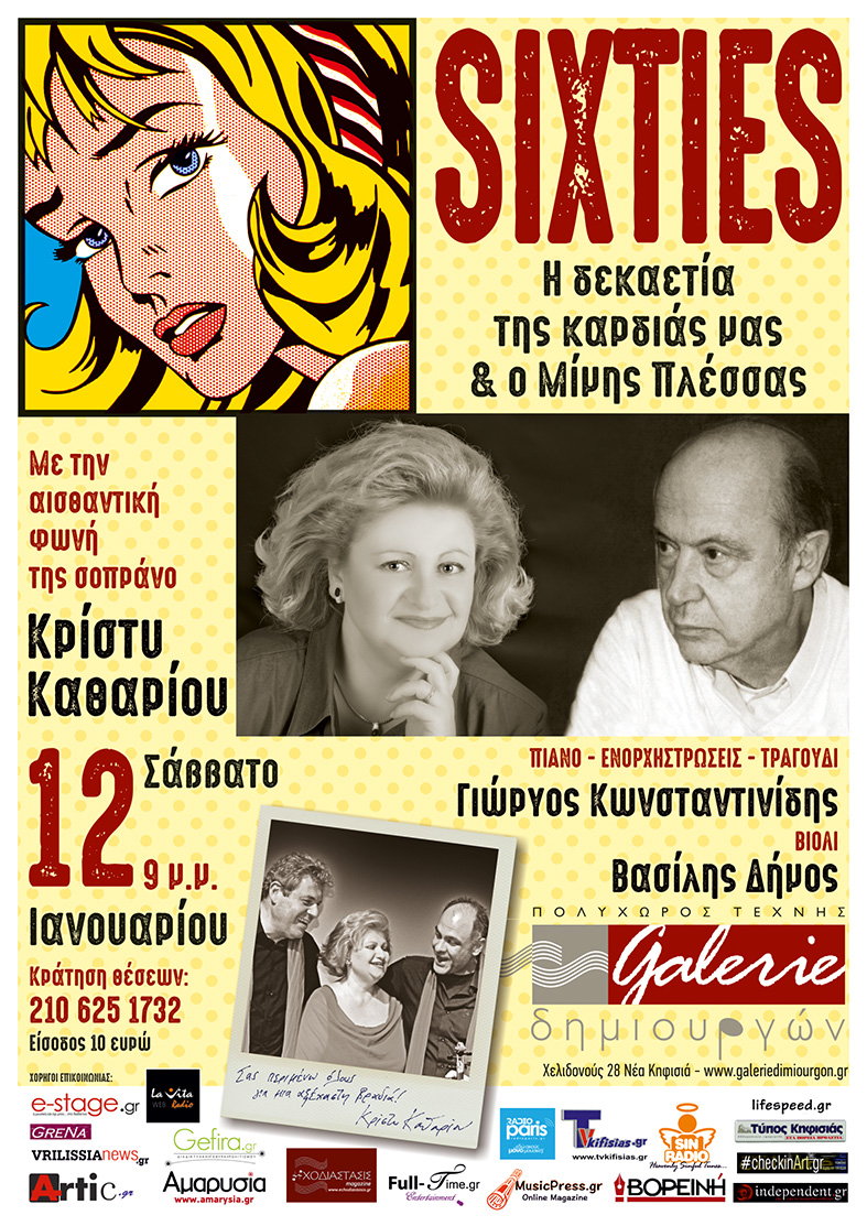 Η δεκαετία του ΄60 υπήρξε ιδιαίτερα παραγωγική στην ελληνική και παγκόσμια μουσική σκηνή:Βeatles, Elvis Prisley, Frank Sinatra, Paul Anka, Nancy Sinatra, Nina Simone, Janis Joplin, Θεοδωράκης, Ξαρχάκος, Χατζηδάκης, Πλέσσας κ.α, συναντήθηκαν ήδη, με μεγάλη επιτυχία στo γνωστό πολυχώρο τέχνης ”Galerie Δημιουργών”.